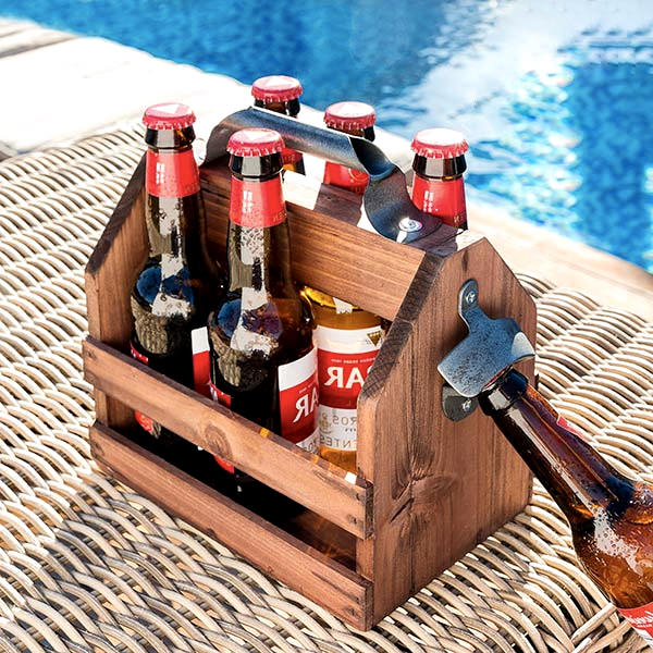 Chystáte se na party a rádi byste donesli i něco k pití? Udělejte to stylově, uložte si šest třetinek pěkně na bezpečné místo. Dřevěný retro stojan na láhve je ochrání, díky rukojeti se perfektně přenáší a zabudovaný otvírák přinese komfort rychlé přípravy pití. Dřevěný retro stojan na láhve s otvírákem je tím pravým dárkem pro partu chlapů, kteří si zaslouží pořádnou orosenou odměnu.Prostor pro 6 láhví o objemu 500 mlVyroben ze dřevaKovové držadloV boční straně je zabudován otvírákRozměry: 26 x 28 cmZásilkovňa – výdejní místa: 79 KčPPL ParcelShop a Parcelbox: 89 KčPPL kurýr: 109 KčDobírka: + 30 KčPři objednávce nad 1500 Kč je doprava zdarma.