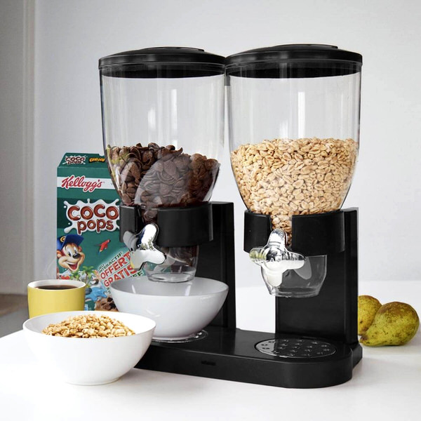 Máte rádi cereálie a neumíte si bez nich představit den? Je tu pro vás dvojitý dávkovač na cereálie, který padne do vaší kuchyně jako ulitý!Zbavte se neskladných krabic a sáčků a využijte tento doplněk do domácnosti na vaše oblíbené jídlo či každodenní snídani.Dvojitý dávkovač na cereálie obsahuje dvě nádobky, do kterého se vejde až půl kila cereálií. Je ideální pro rodiny s dětmi a ve vaší domácnosti tak můžete mít po ruce sladké cereálie pro děti a ty méně kalorické pro vás.Tento dávkovač může být také vhodný dárek pro vaše přátele nebo členy rodiny.2 nádoby na dávkováníKaždá nádoba pojme až 500 g cereáliíVyroben z plastu a gumyRozměry: 34,5 x 19,5 x 35 cmNevhodný do myčkyZásilkovňa – výdejní místa: 79 KčPPL ParcelShop a Parcelbox: 89 KčPPL kurýr: 109 KčDobírka: + 30 KčPři objednávce nad 1500 Kč je doprava zdarma.