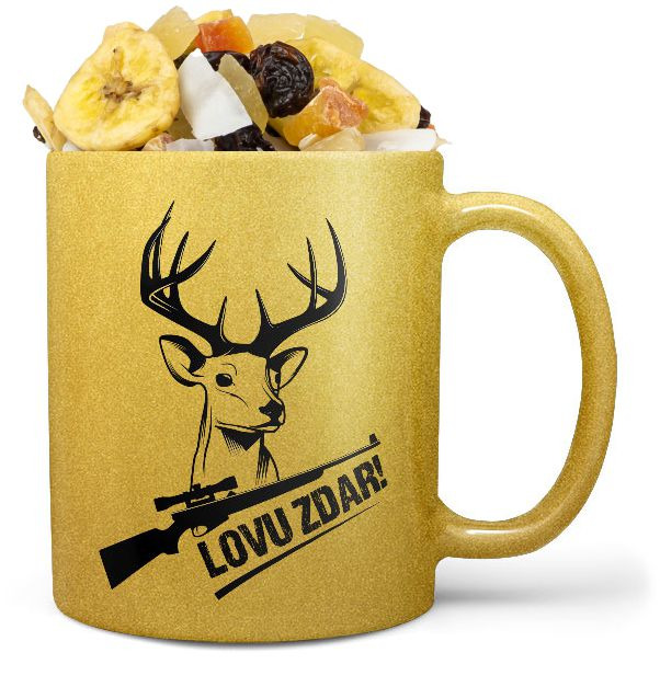 • Hrnek Lovu zdar (zlatý) (Náplň hrníčku: Tropická směs)