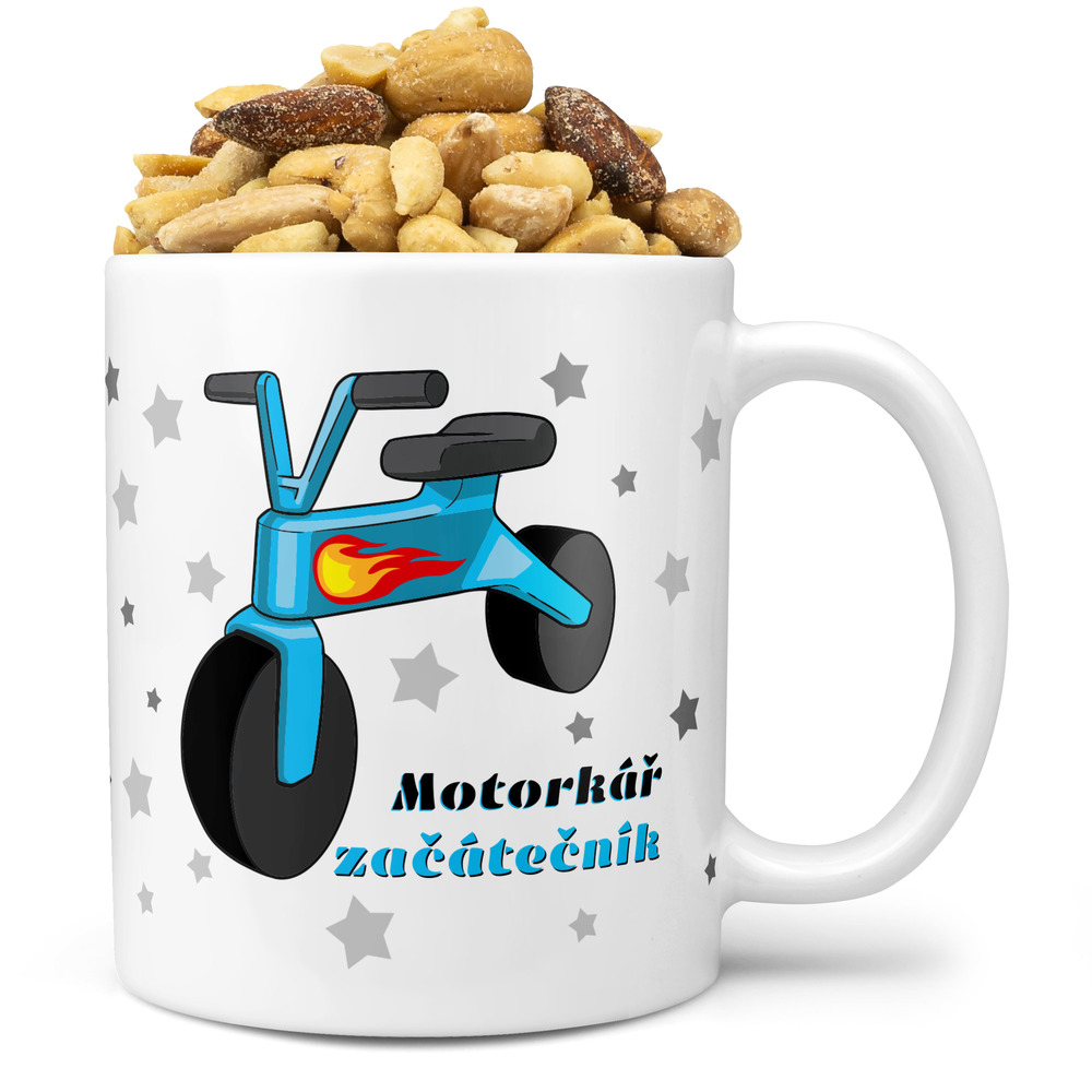 Hrnek Motorkář začátečník (Náplň hrníčku: Směs slaných oříšků)