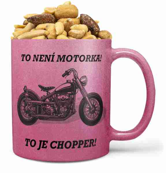 Hrnek To je Chopper - růžový (Náplň hrníčku: Směs slaných oříšků)
