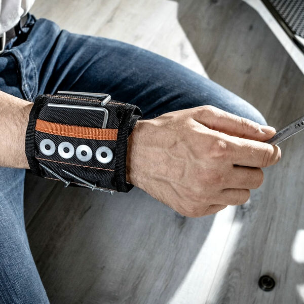 Každému, kdo si zažil práce s vrtačkou, hřebíky a šrouby by se určitě alespoň občas hodila ruka navíc, která by mu všechny tyto věci hledala v pracovním prostoru. Nemusíte být chobotnice, abyste tento problém vyřešili. Udělá to za vás magnetický náramek pro kutily. Můžete na něj bezpečně a hlavně přehledně uchytit všechny potřebné věci a bez hledání je budete mít vždy po ruce. Magnetický náramek pro kutily je ultra praktický doplněk, který zjednoduší drobné i větší stavitelské plány a opravy v domácnosti.Vyroben z polyesteru a magnetuZapínání na suchý zipObsahuje 15 magnetů a 2 kapsyVhodný na malé kovové předměty (hřebíky, šrouby, matky, špendlíky)Rozměry: 34 x 9,5 x 0,3 cmZásilkovňa – výdejní místa: 79 KčPPL ParcelShop a Parcelbox: 89 KčPPL kurýr: 109 KčDobírka: + 30 KčPři objednávce nad 1500 Kč je doprava zdarma.
