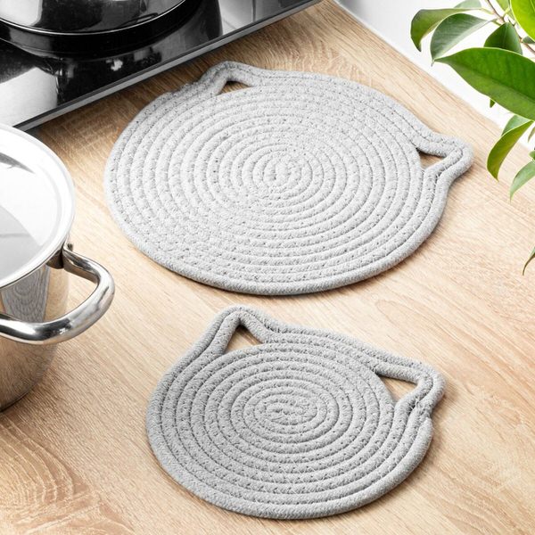 Kočky v kuchyni? Ty živé byste možná do ní nevpustili, ale naše podložky pod horké nádoby si zamilujete! originální podložky ve tvaru koček se stanou vašimi spolehlivými kuchyňskými pomocníky. Vždy, když budete potřebovat bezpečně odložit horké hrnce či pekáče, ochrání váš stůl i pracovní desku před poškozením. Jsou tepelně odolné, pružné a díky protiskluzovému povrchu se neposunou ani o chlup. Praktická ouška umožňují jejich snadné zavěšení, díky čemuž poslouží i jako stylová dekorace na zeď. Vaše kuchyně zůstane bez škrábanců, spálenin as dávkou kočičího šarmu navíc. Hravý design a funkčnost potěší každou hospodyňku, která ví, že vařit lze se stylem.Sada 2 podložek ve tvaru kočičí hlavySpolehlivá ochrana pracovních desek, kuchyňských povrchů a ubrusů před vysokou teplotouRozměry (průměr): větší podložka: 25,5 cm, menší podložka: 19,5 cm, tloušťka: 0,5 cmMají ouško na zavěšeníVyrobeno z pevné, teplovzdorné bavlnyStylový a užitečný dárek nejen pro milovníky kočekZásilkovňa – výdejní místa: 79 KčPPL ParcelShop a Parcelbox: 89 KčPPL kurýr: 109 KčDobírka: + 30 KčPři objednávce nad 1500 Kč je doprava zdarma.