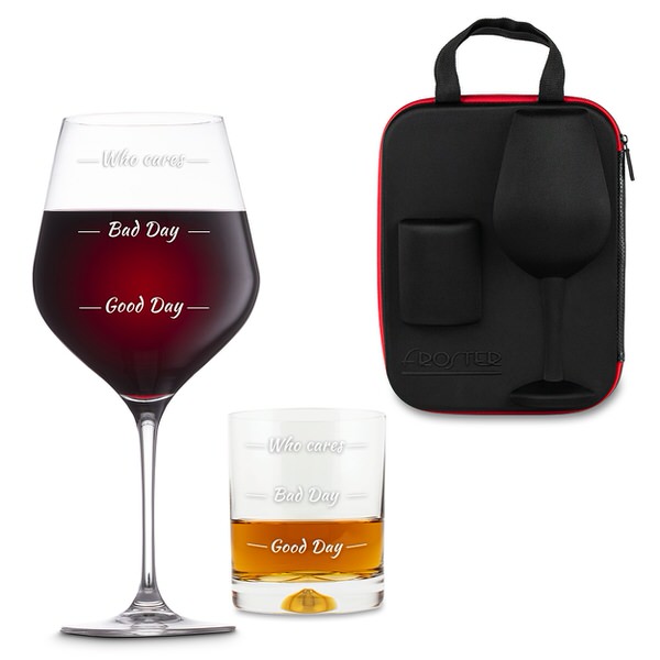 Pouzdro s sklenicí na whisky a na víno Who Cares – pro páry, které si rozumějí. Sada obsahuje sklenici na whisky a obrovskou sklenici na víno. Obě sklenice jsou označeny třemi úrovněmi naplnění, díky kterým se můžete distancovat od reality a dát druhému člověku znát svou náladu se smyslem pro humor. Celé je to zabalené v elegantním a odolném pouzdře, které chrání sklo a umožňuje si ho vzít s sebou kamkoli jdete. Potěšte sebe nebo své přátele či známých, kterým darujete tento skvělý dárek.Sada obsahuje sklenici na whisky a obrovskou sklenici na víno v přenosem pouzdřeSklenice s nápisy: Good Day (dobrý den), Bad Day (špatný den) a Who Cares (koho to zajímá)Sklenice jsou vyrobeny ze sklaPouzdro je vyrobeno z tvrdého pevného materiálu, které chrání sklenice před rozbitímObjem sklenice na whisky: 300 mlObjem sklenice na víno: 860 mlLehký a kompaktní design umožňuje zabalení pouzdra do tašky, batohu nebo kufruRozměry pouzdra: 32,5 x 24,5 cmMýt jen ručně!Zásilkovna – výdejní místo a Z-BOX: 69 KčPPL kurýr: 99 KčPPL ParcelShop a Parcelbox: 89 KčDobírka: + 39 KčPři objednávce nad 1500 Kč je doprava zdarma.