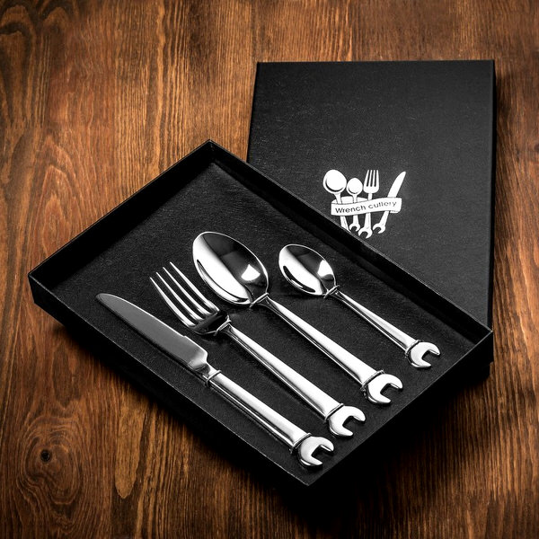 Soupravu francouzských klíčů je klasickou výbavou nejedné domácnosti. Buďte originální a pořiďte si příbor, který má z druhé strany tvar opravářských pomůcek. sada příborů pro mechanika obsahuje čtyři základní druhy kuchyňského příboru. Díky trvanlivým materiálům, které byly použity při výrobě se nebudete muset bát, že by vám po čase přestal dělat společnost v kuchyni. Sada kvalitních příborů z nerezavějící oceli je úžasný dárek nejen pro opravdové mechaniků, ale pro všechny, kteří se čas od času rádi vyřádí s klíčem nebo kladivem v ruce.Sada 4 příborů (nůž, vidlička, lžička a čajová lžička)Příbory mají zakončení ve tvaru vidlicového klíčeVyrobeno z vysoce kvalitní nerezové oceliRozměry: nůž 22,5 x 2 cm, vidlička 19 x 2,20 cm, lžíce 19 x 4 cm, lžička 14,4 x3 cmDárkové baleníZásilkovňa – výdejní místa: 79 KčPPL ParcelShop a Parcelbox: 89 KčPPL kurýr: 109 KčDobírka: + 30 KčPři objednávce nad 1500 Kč je doprava zdarma.