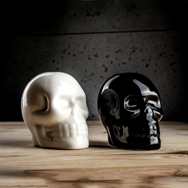Dopřejte vaší kuchyni nápadité a netradiční doplňky. Funkčnost a vzhled se snoubily ruku v ruce při tvorbě této černo-bílé dvojice slánky a pepřenky ve tvaru dvou lebek. Nuda na kuchyňském stole už nemá žádnou šanci. Mohou perfektně posloužit i na tematických večerech či halloweenské párty s přáteli. Právě tito dva pomocníci udělají moderní a trendy kuchyni i z obyčejné a nevýrazné. Slánka a pepřenka lebky je nevšední doplněk, který zaručeně oživí každou domácnost.Vyrobeno z keramikyRozměry: 6,5 x 4,5 cmBílá lebka pro sůlČerná lebka pro pepřMýt jen ručně!Nevkládejte do mikrovlnné troubyZásilkovňa – výdejní místa: 79 KčPPL ParcelShop a Parcelbox: 89 KčPPL kurýr: 109 KčDobírka: + 30 KčPři objednávce nad 1500 Kč je doprava zdarma.