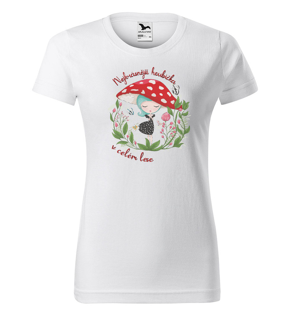 Tričko Nejkrásnější houbička – dámské (Velikost: XL, Barva trička: Bílá)