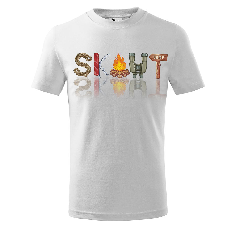 Tričko Skaut – nápis – dětské (Velikost: 134, Barva trička: Bílá)