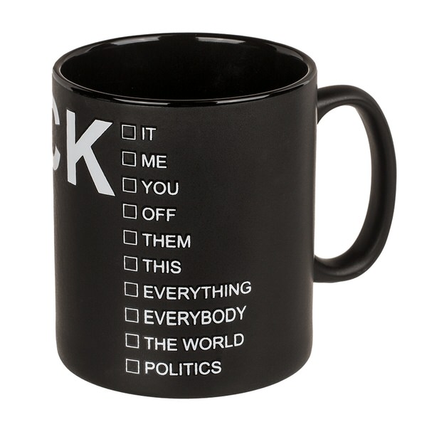 Máte rána, kdy byste na všechny otázky nejraději odpověděli jediným slovem? Náš popisovací hrnek Fuck to řekne za vás. Tento robustní kousek není jen obyčejný hrnek na kávu – je to váš osobní prostor pro vyjádření postoje a originální dárek pro každého, kdo miluje recesi.Díky přiložené křídě můžete na černý povrch napsat jméno šéfa, kolegy nebo jen stručný vzkaz světu. A když vás vztek přejde (nebo kofein konečně zabere), nápis jednoduše smažete a druhý den můžete začít s čistým štítem. Tento velký hrnek s nápisem Fuck je ideální parťák pro každého, kdo si nebere servítky.Vyroben z kameninyHrnek obsahuje nápis FuckV balení se nachází bílá křídaRozměry: 15,5 x 11 x 13 cmVhodný do myčky nádobíVysoká odolnost a trvanlivost díky kameniněŠtědrý objem pro oblíbený nápoj (až 885 ml)Možnost psát na hrnek křídouJednoduché mytí a opětovné použitíVhodný pro použití doma, v práciMožnost vyjádřit svou náladu pomocí nápisůIdeální jako dárek pro nekonvenční kamarádyVhodný pro horké i studené nápojeZásilkovna – výdejní místo a Z-BOX: 69 KčPPL kurýr: 99 KčPPL ParcelShop a Parcelbox: 89 KčDobírka: + 39 KčPři objednávce nad 1500 Kč je doprava zdarma.