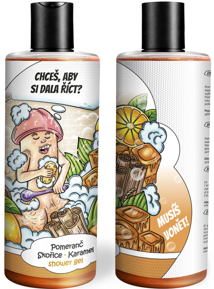 Vtipný sprchový gel – Dala říci (Vůně sprchového gelu: Pomeranč, skořice a karamel, Počet: 6ks)