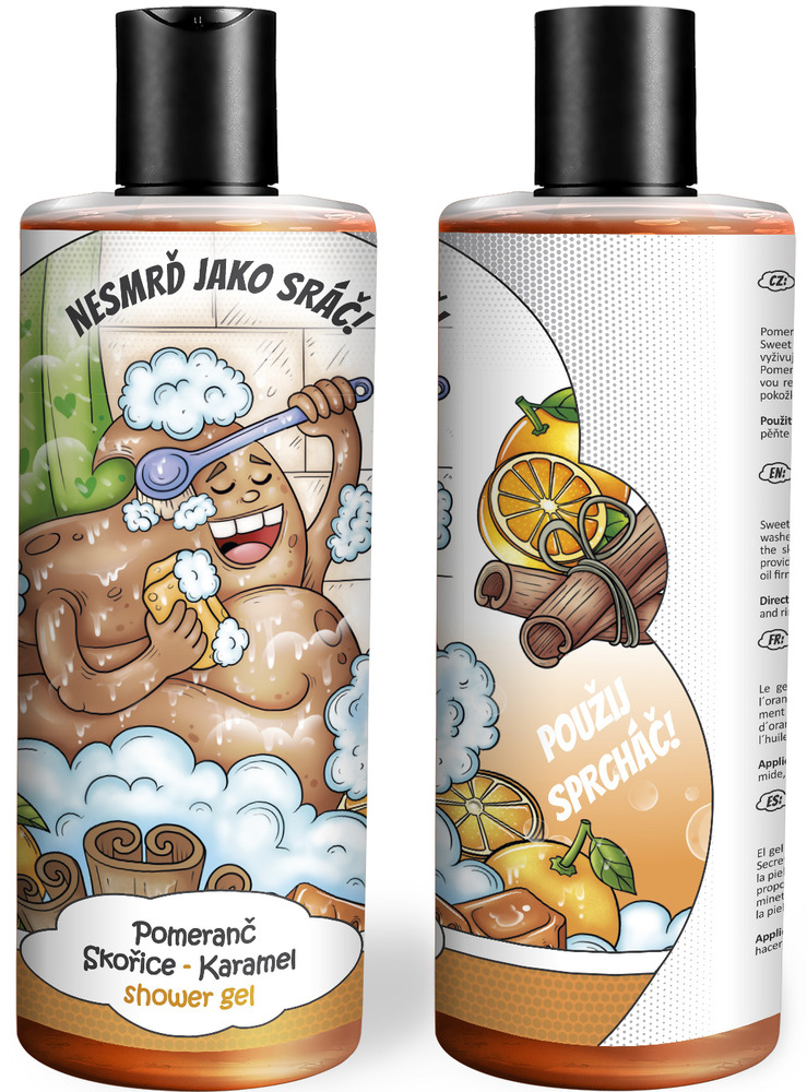 Vtipný sprchový gel – Jako sráč (Vůně sprchového gelu: Pomeranč, skořice & karamel)